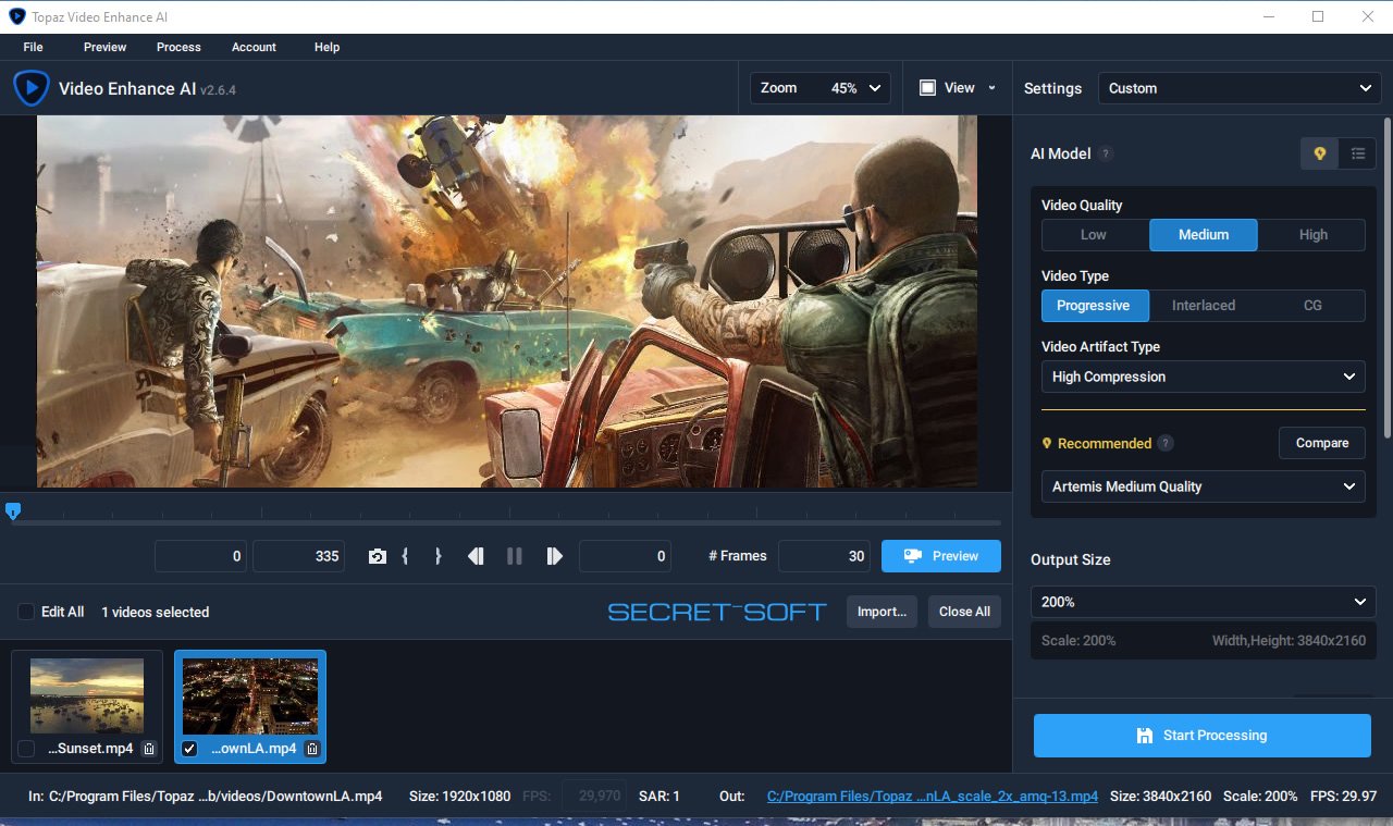 Topaz Video Enhance AI это отличный способ дать новую жизнь старым видео прямо у себя дома. Для работы не требуется никаких специальных знаний, все инструменты приложения очень простые в использовании, просто загружаете в программу свое видео, выбираете выходное качество и нажимаете начать, всё остальное умный интеллект программы сделает самостоятельно.